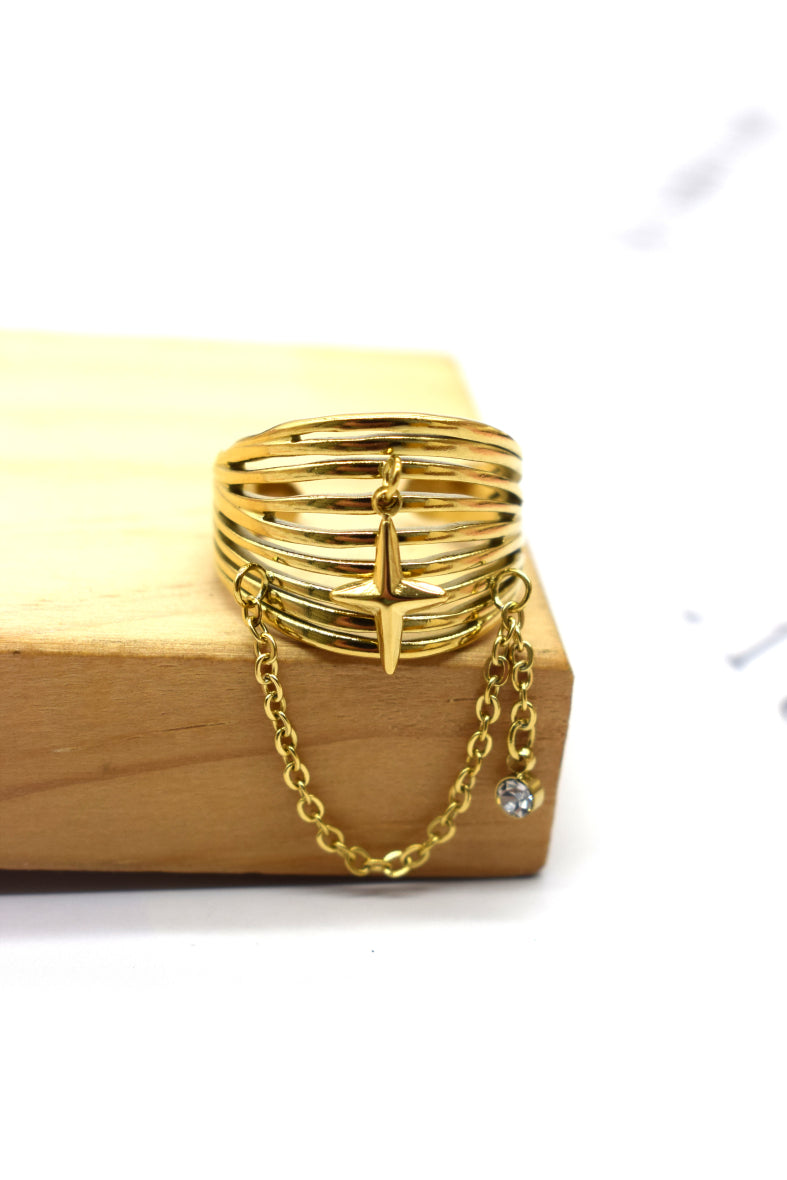 Bague Agnès Dorée en acier inoxydable breloques et chaîne