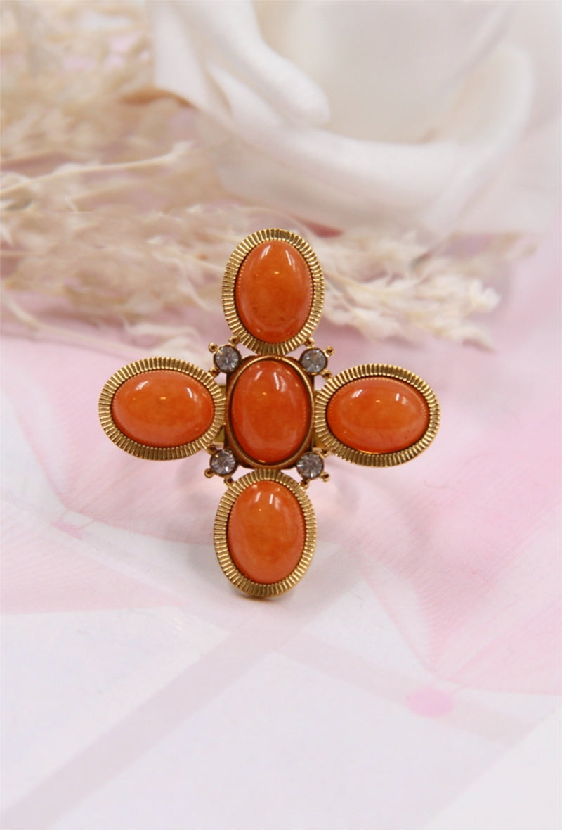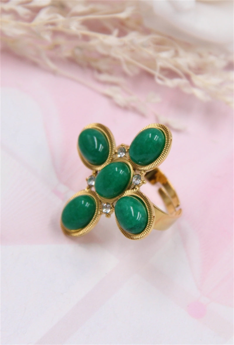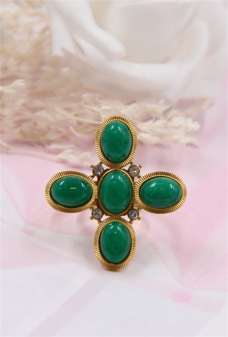 Idéale pour ajouter une touche bohème chic à vos looks. Notre bague Bohème est en forme de croix ornée de pierres vertes, oranges ou noires. Sa taille est parfaite, une bague qui s’affirme mais qui, portée, ne nous gêne pas. Elle est en acier inoxydable et ajustable (taille unique). Elle vous est proposée dorée en 3 couleurs.