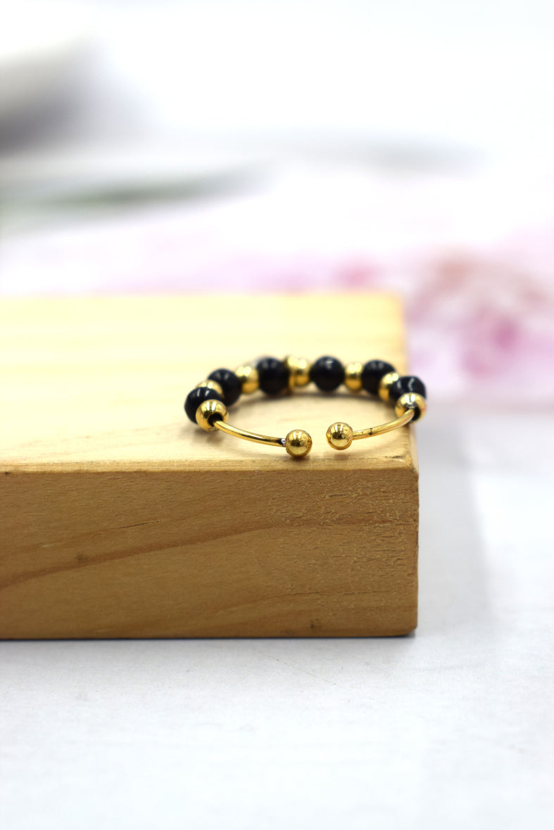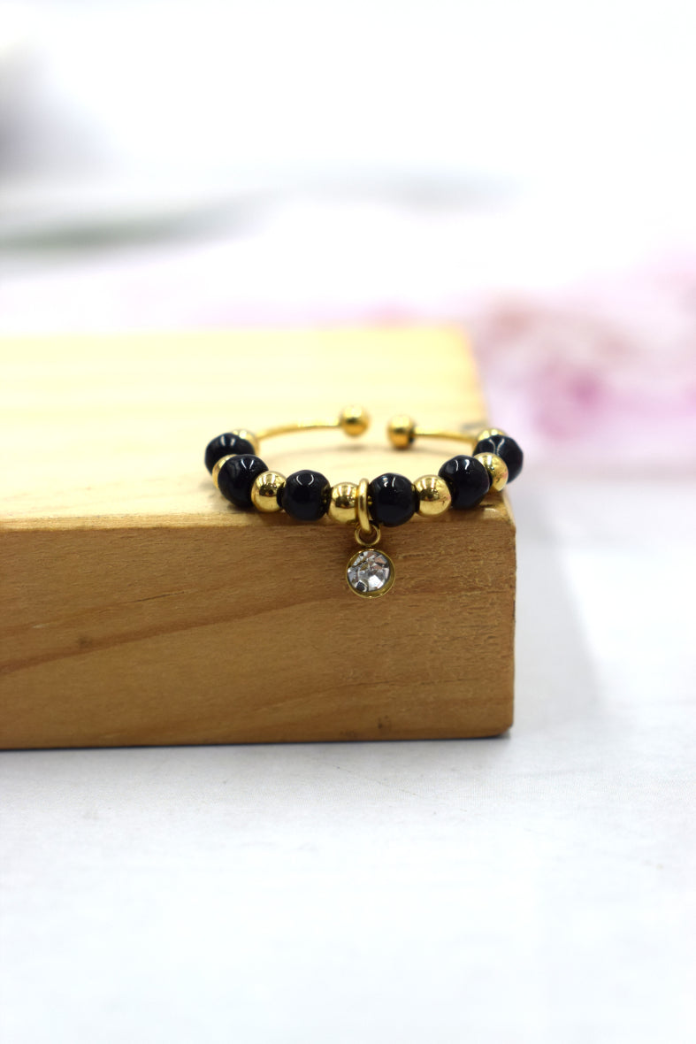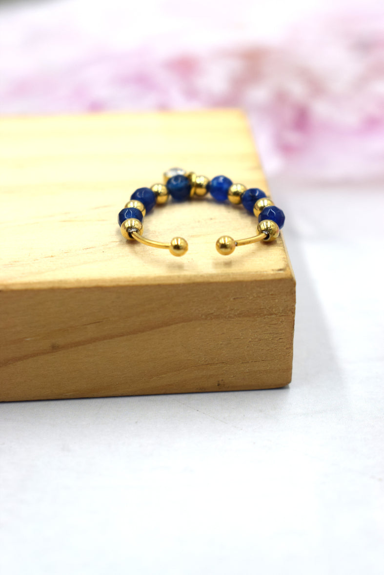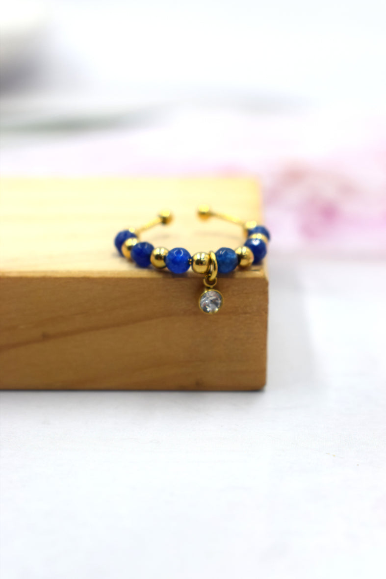 Bague Cyan perles bleues ou noires en Acier Inoxydable Doré