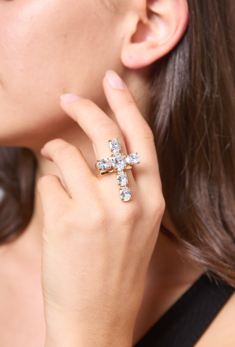 La Bague Spirit est une bague imposante ornée d’une grande croix tout en brillant. Magnifique modèle, avec beaucoup de personnalité. Ce bijou est en acier inoxydable et vous est proposé doré ou argenté. Le modèle est ajustable !