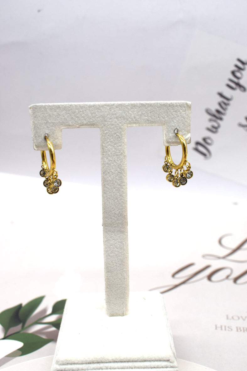 Boucles d’Oreilles Averse Dorées en Acier Inoxydable Anneau et Strass
