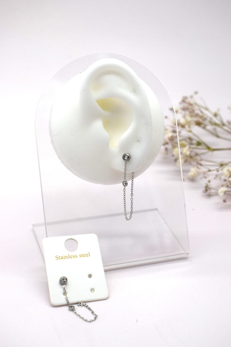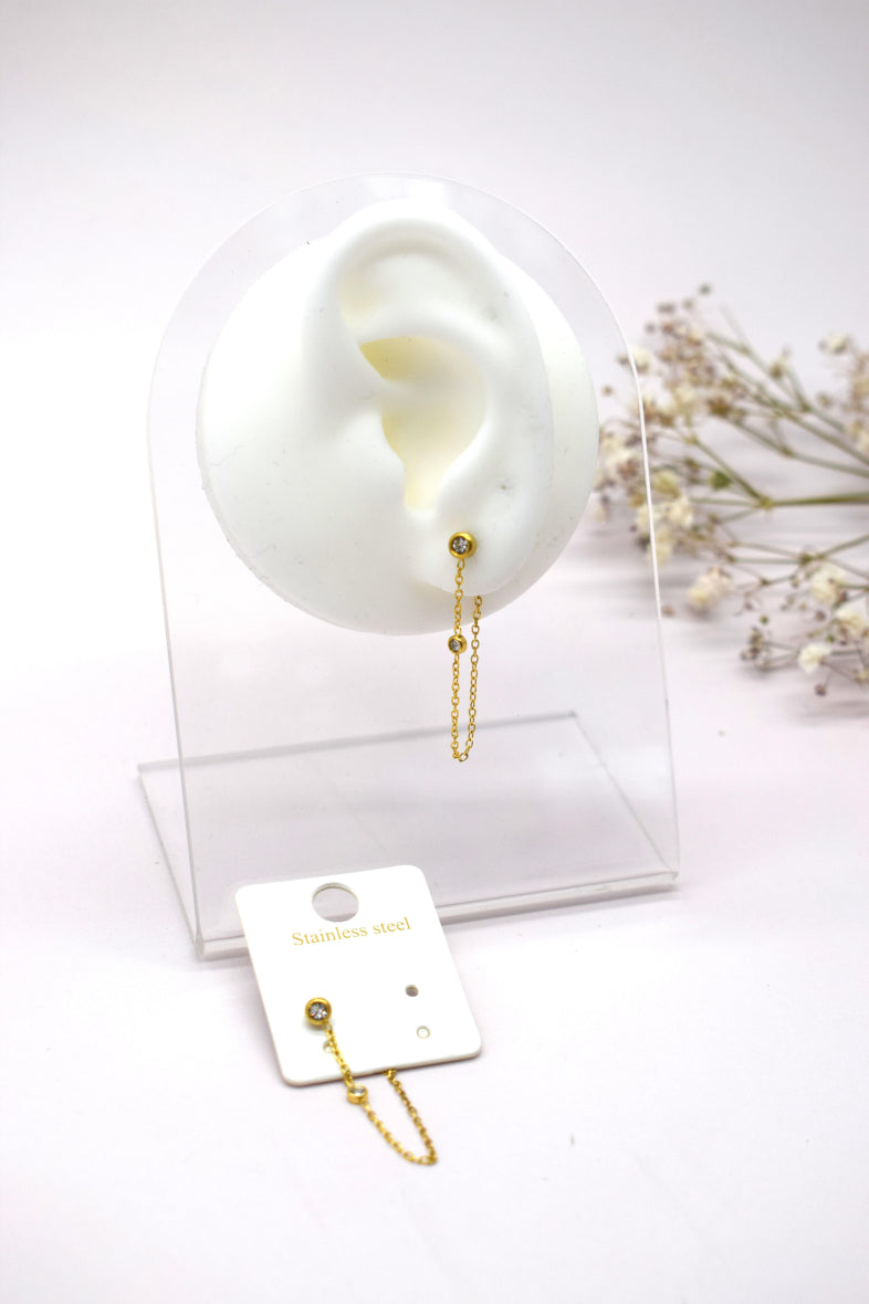 Les Boucles d’oreilles Linette sont très raffinées ! Une petite chaînette pendante et 2 petits brillants pour beaucoup de légèreté et d’élégance ! Ce modèle est en acier inoxydable et vous est proposé argent ou or !