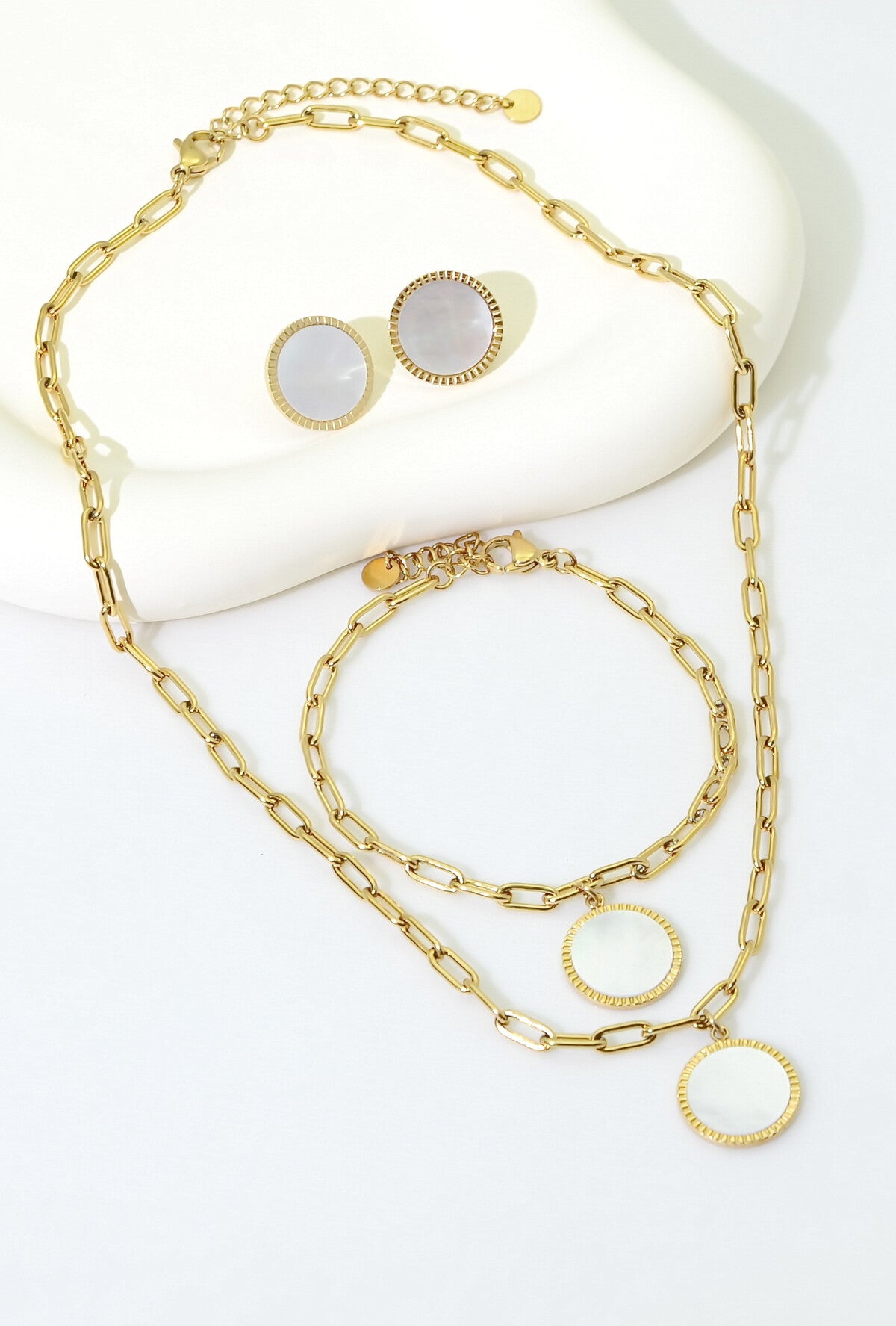 Les Boucles d’oreilles Naca, nacre et acier inoxydable doré