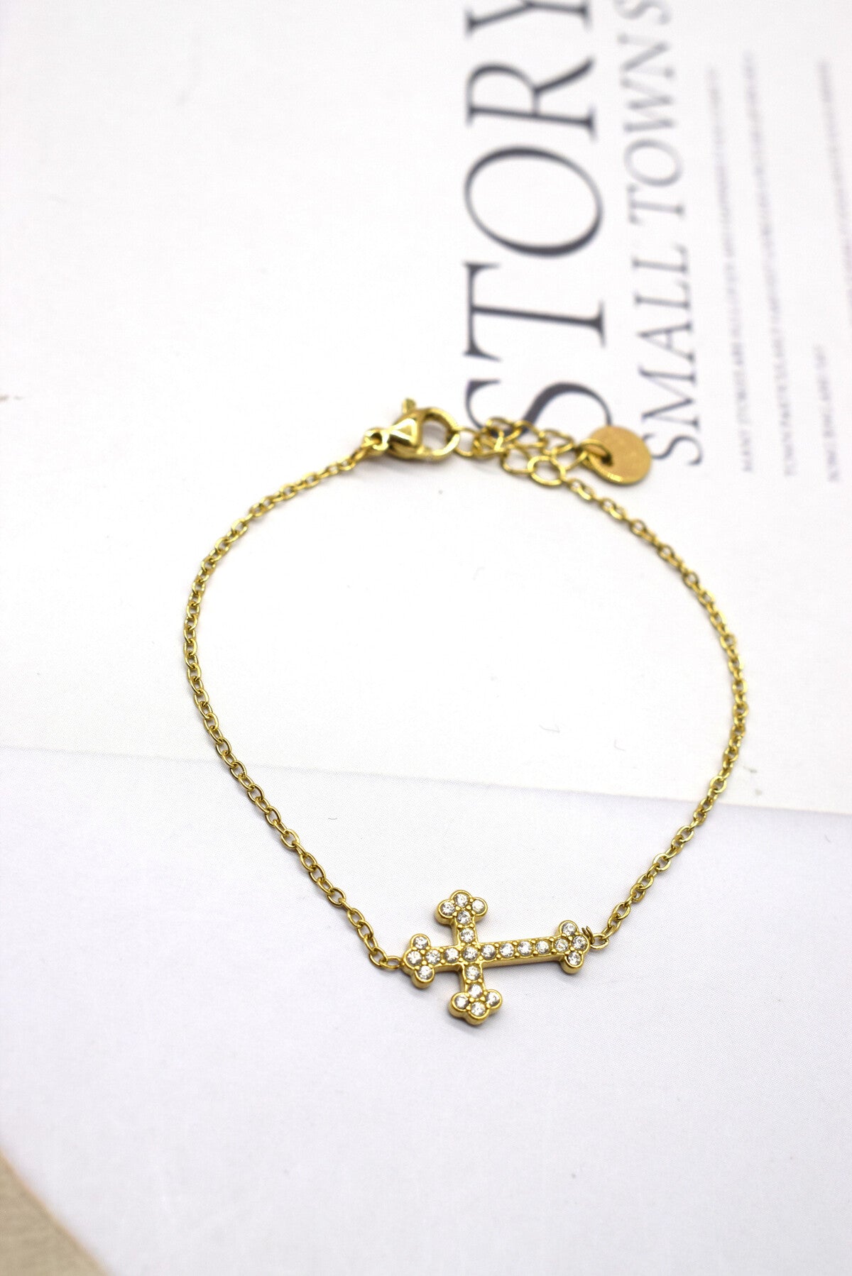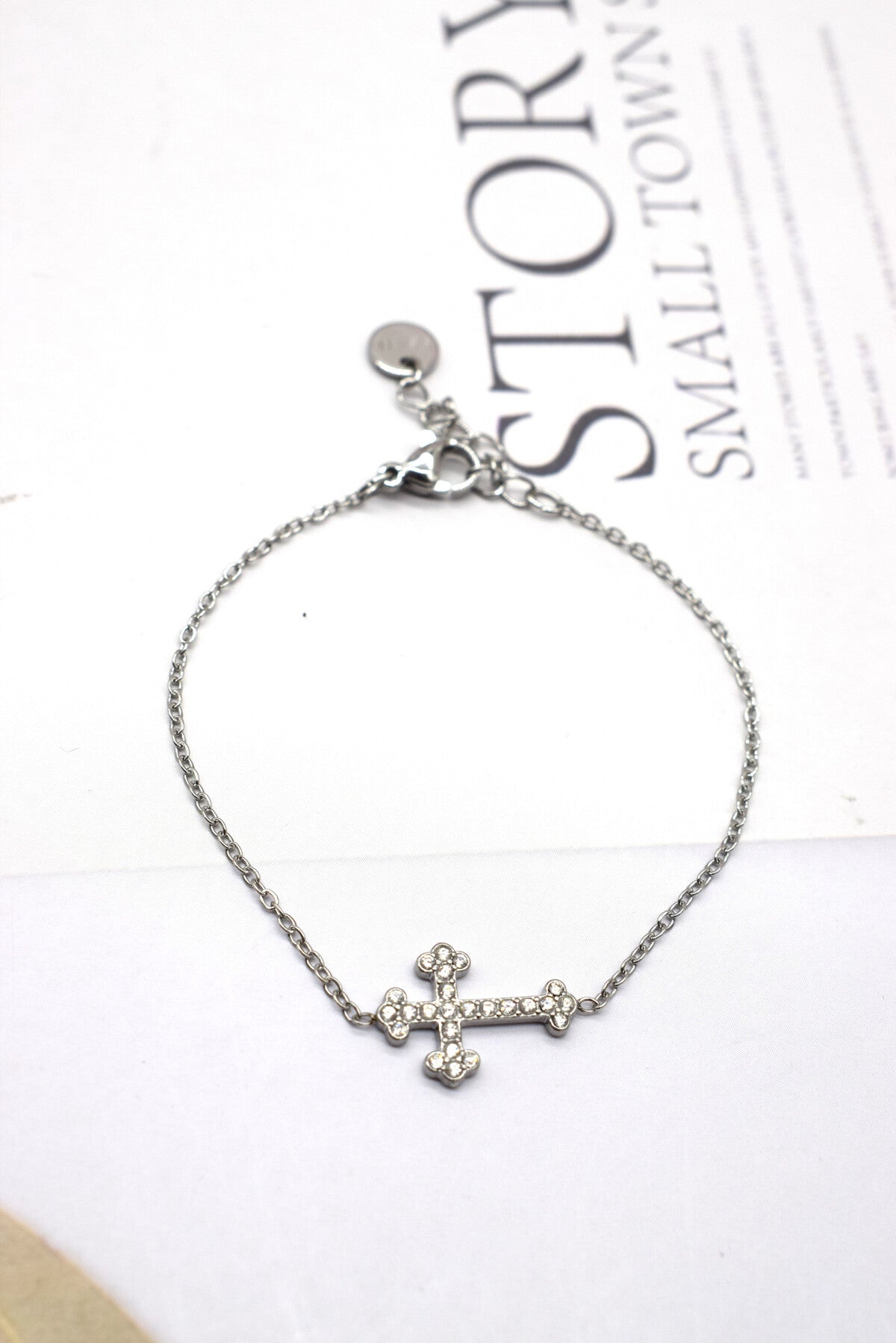 Le Bracelet Catherine est un très joli modèle. Tendance et raffiné. Une chaîne fine ornée d’une croix ornée elle-même de strass. Ce bijou est en acier inoxydable et vous est proposé doré ou argenté.
