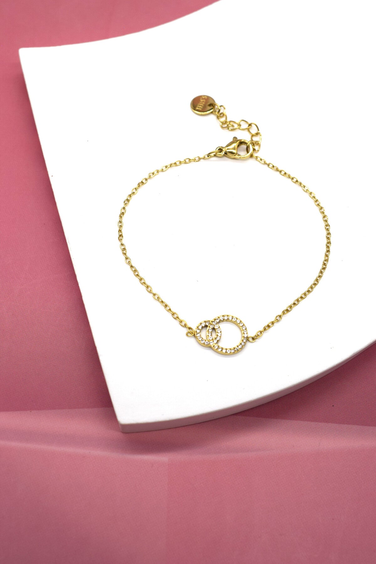 Le Bracelet Versa, est un modèle très fin et raffiné, une chaîne fine ornée de 2 cercles de strass. Une pièce lumineuse et intemporelle à porter au quotidien. Il est en acier inoxydable et vous est proposé doré ou argenté.