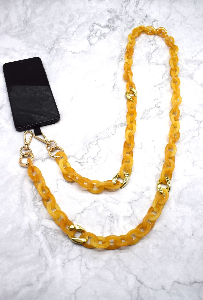 La chaîne de portable Gabbana est une longue chaîne pour votre téléphone (longueur totale 1m30cm) effet sac en bandoulière. Le modèle est en résine et vous est proposé en deux couleurs : noir ou ocre. Du style jusqu’au portable !