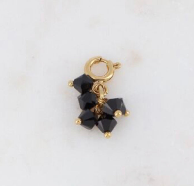 Le charm’s Cristalline apporte beaucoup de raffinement à vos bijoux, il est en acier inoxydable doré et en cristaux noirs taillés. Dimension : 11 x 18mm. Voir aussi notre collection « Je personnalise mon bijou » !