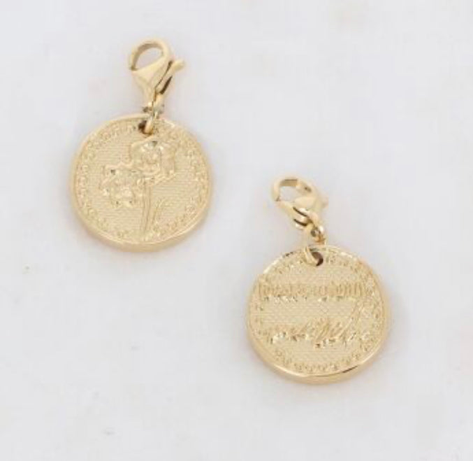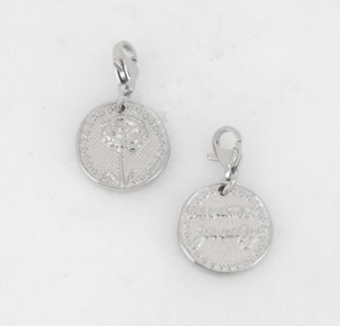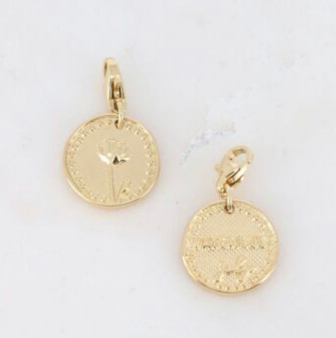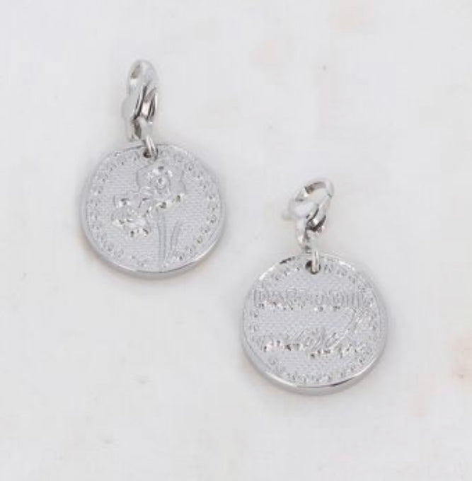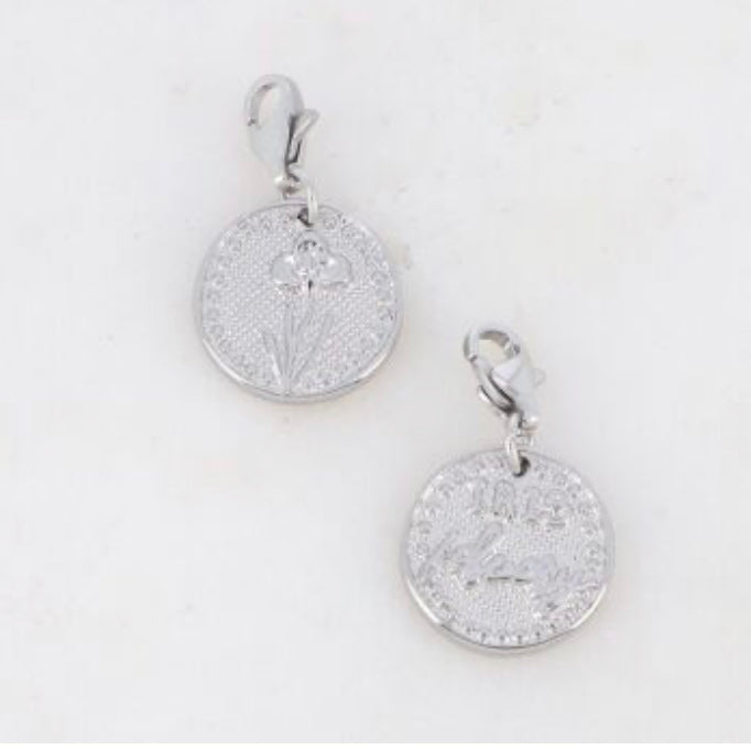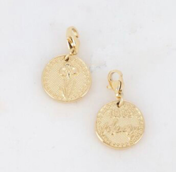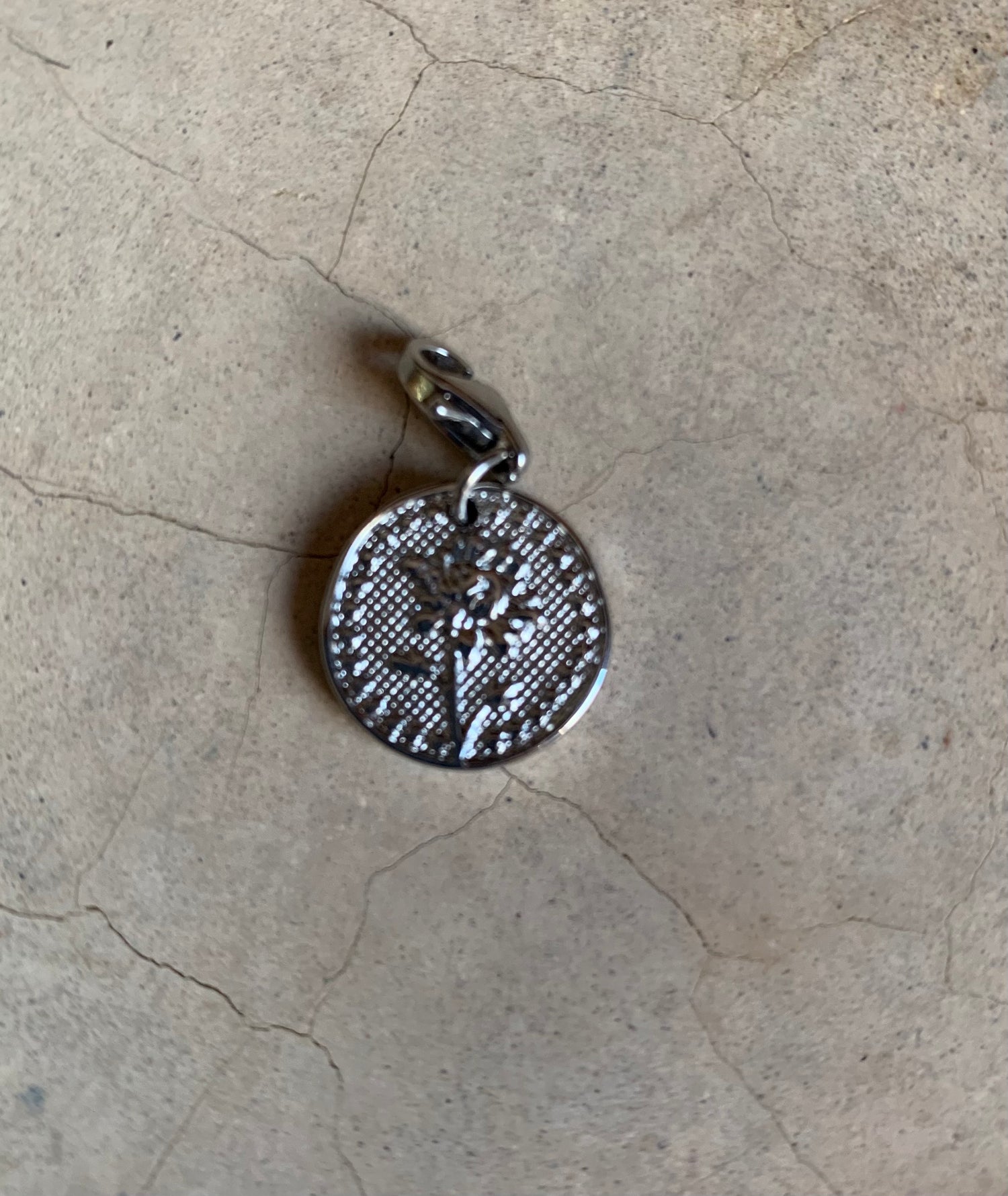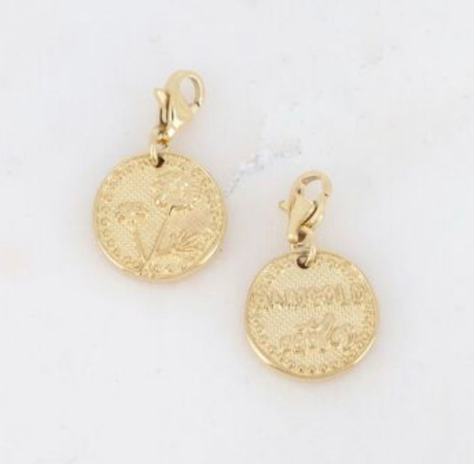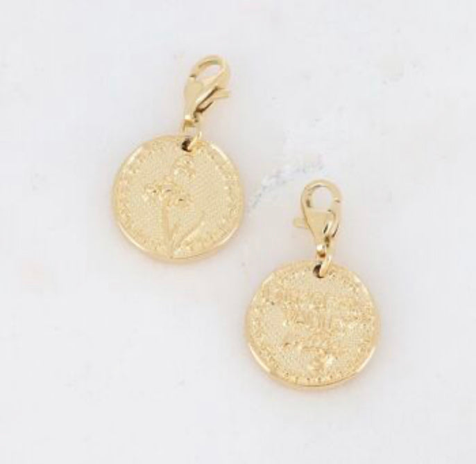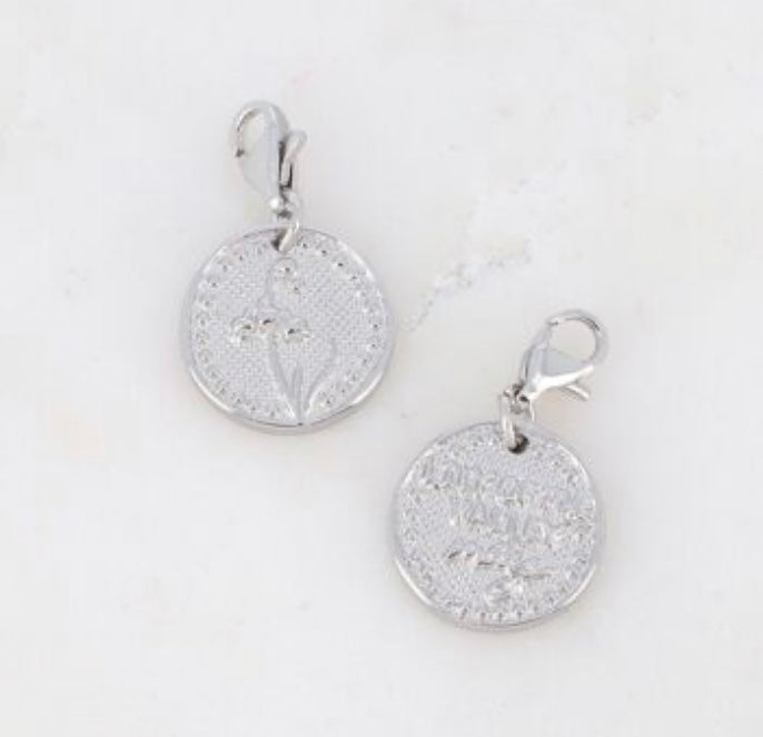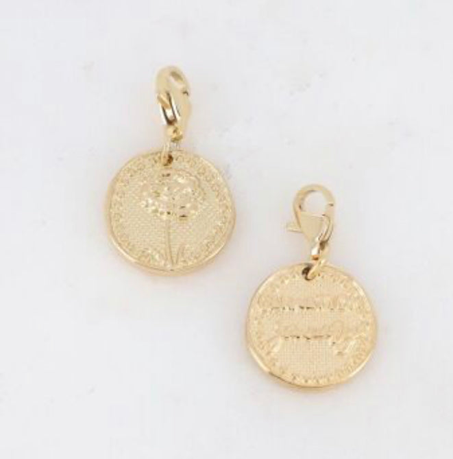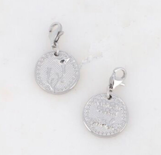 Une fleur est attribuée à chaque mois pour ce charm’s fleur de naissance. Une fleur gravée sur une face, le mois et nom de la fleur en anglais sur l’autre face du médaillon (1,5cm de diamètre). Pour mettre un peu de vous sur vos bijoux, ou à porter sans modération avec plusieurs charm’s fleur de naissance sur un même bijou, on adore ! voir nos photos ! Ce modèle vous est proposé en acier inoxydable doré ou argenté. Voir aussi notre collection « Je personnalise mon bijou » !