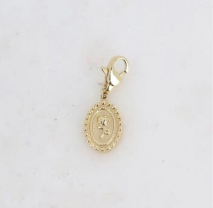 Lady Rose, un charm’s de forme ovale (1,1cm x 0,8cm), style ancien médaillon orné d’une rose en son centre qui lui donne un côté rétro qu’on adore ! Beaucoup de raffinement pour ce modèle ! Il est en acier inoxydable doré. Voir aussi notre collection « Je personnalise mon bijou » !