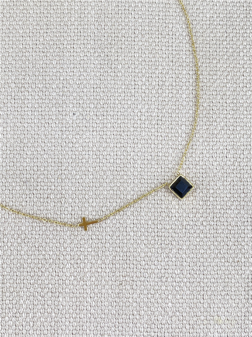 Le collier chaîne Sienne est une chaîne ornée d’une fine croix et d’un cabochon en pierre noire. Une chaîne fine et intemporelle à porter au quotidien. Elle est en acier inoxydable et vous est proposée dorée.