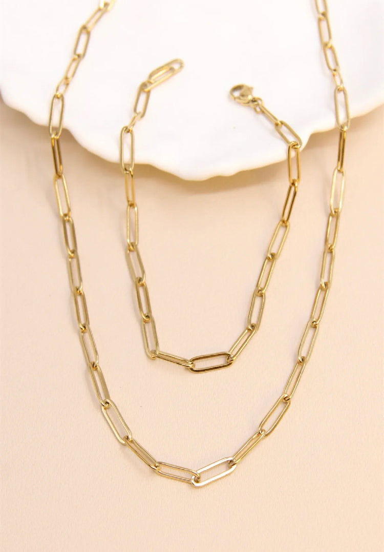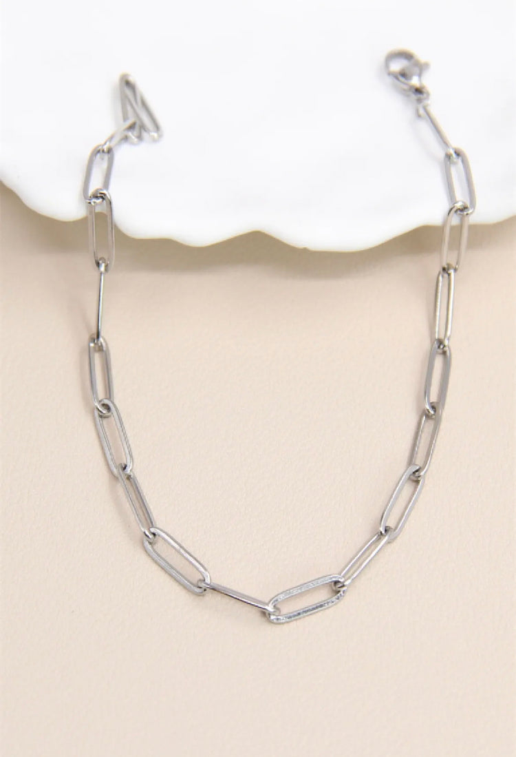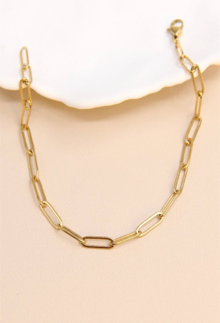 Le modèle Moi Je est un collier ajustable sur toute sa longueur (49cm). Les maillons sont plutôt gros, de forme rectangulaire ce qui lui donne un effet très épuré. Vous pouvez donc le porter tout simplement ou le personnaliser grâce aux charm’s et aux pendentifs que nous vous proposons dans les collections Charm’s… ou Je personnalise… Ce modèle est en acier inoxydable, il vous est proposé pour l’instant uniquement doré.