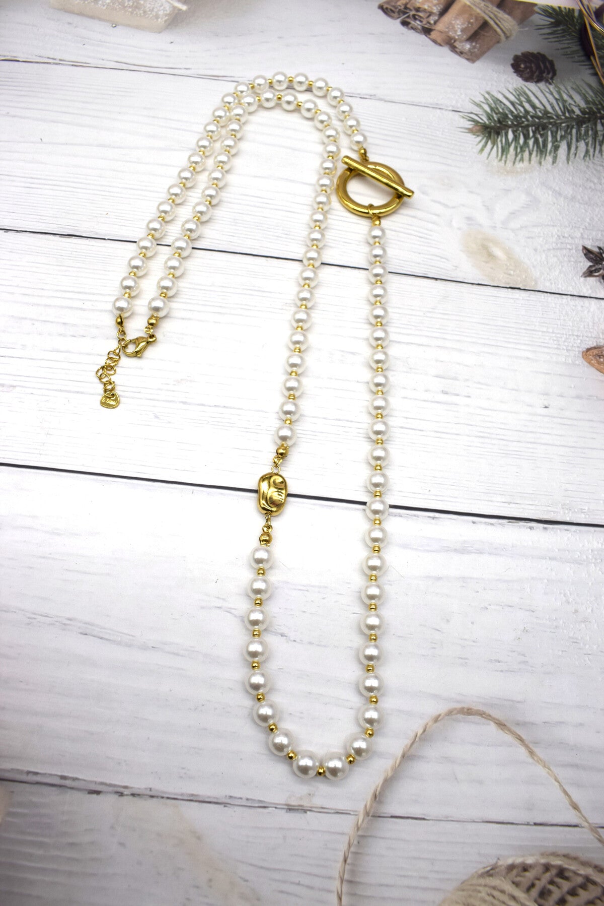 Le Collier Sautoir de perles blanches est une très belle pièce, originale et élégante. Ce modèle donnera une touche très classe à tous vos looks. Ce bijou est en acier inoxydable et vous est proposé doré.