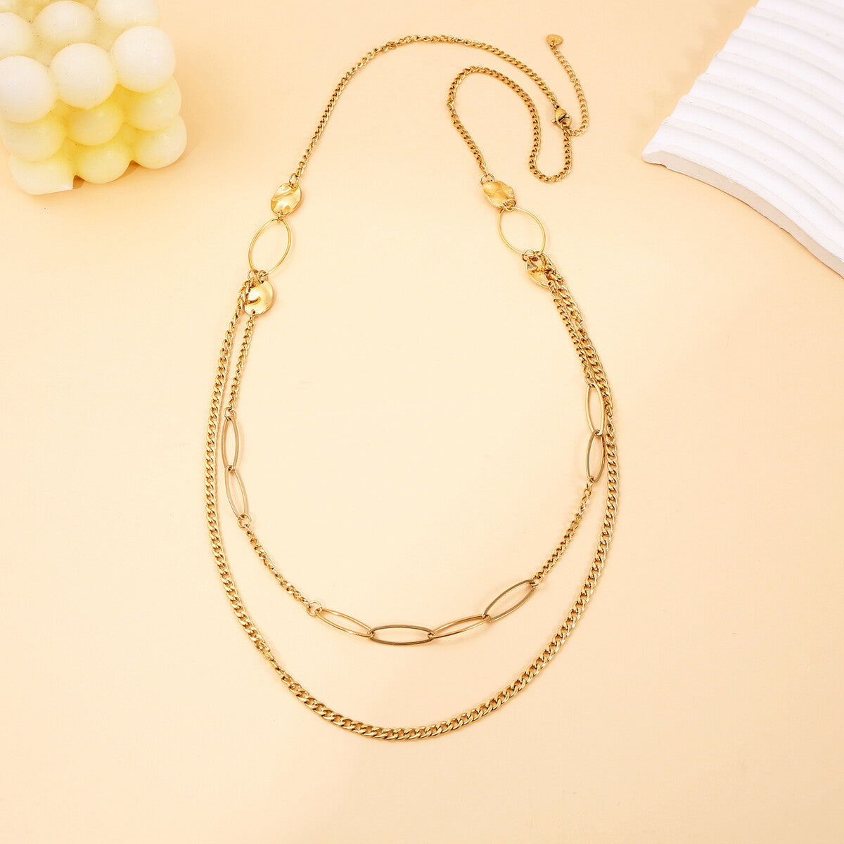 Le Collier Sautoir Modela est un modèle longueur sautoir, ajustable. Collier double aux longueurs différentes avec une conception aux multiples maillons qui en fait une pièce élégante et très originale. C’est un modèle qui a beaucoup de personnalité, une touche d’élégance et de caractère pour tous vos looks. Ce bijou est en acier inoxydable et vous est proposé doré.