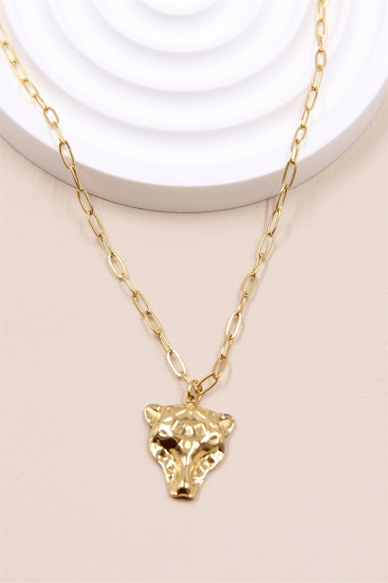 Le modèle Tigre a beaucoup de caractère, une chaîne maillons de taille moyenne, simple, ornée d’une tête de Tigre (environ 2cm x2cm). Longueur totale du collier 44,5cm dont 4,5cm ajustable. Ce modèle est en acier inoxydable et vous est proposé doré.