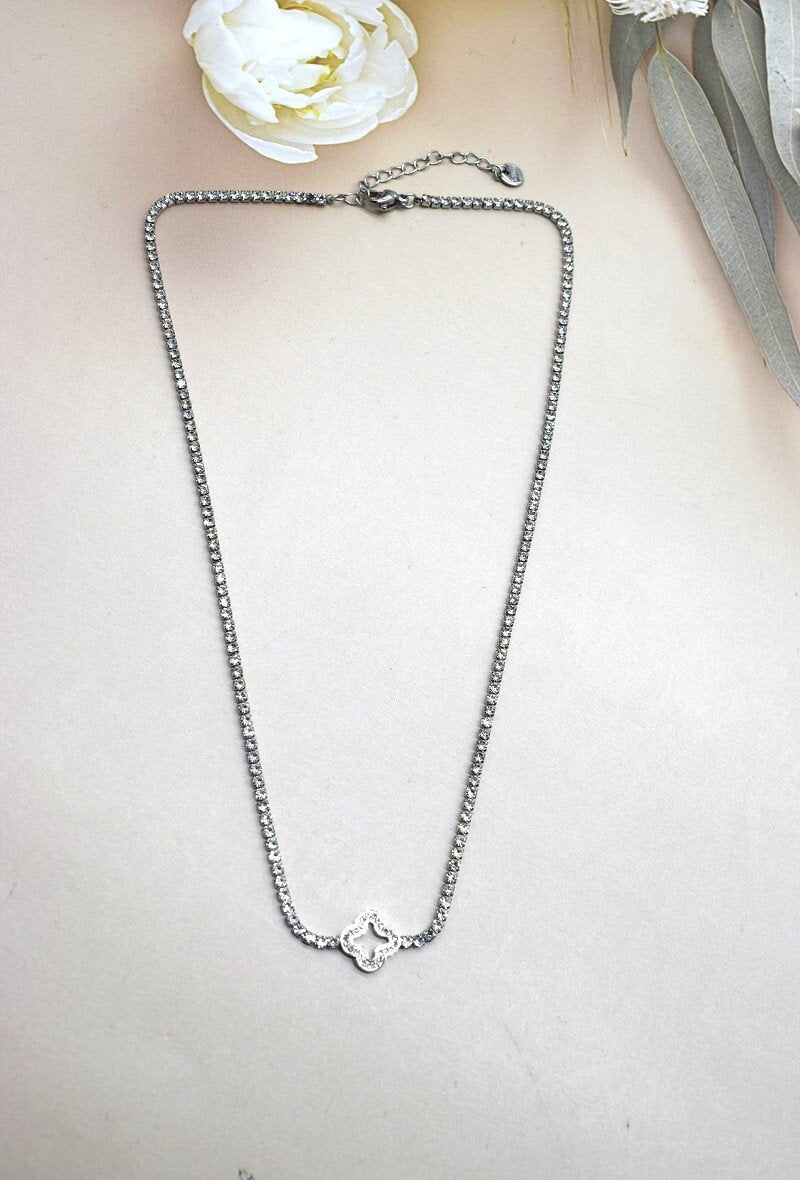 Le Collier Trèfle Strass en acier inoxydable doré ou argenté