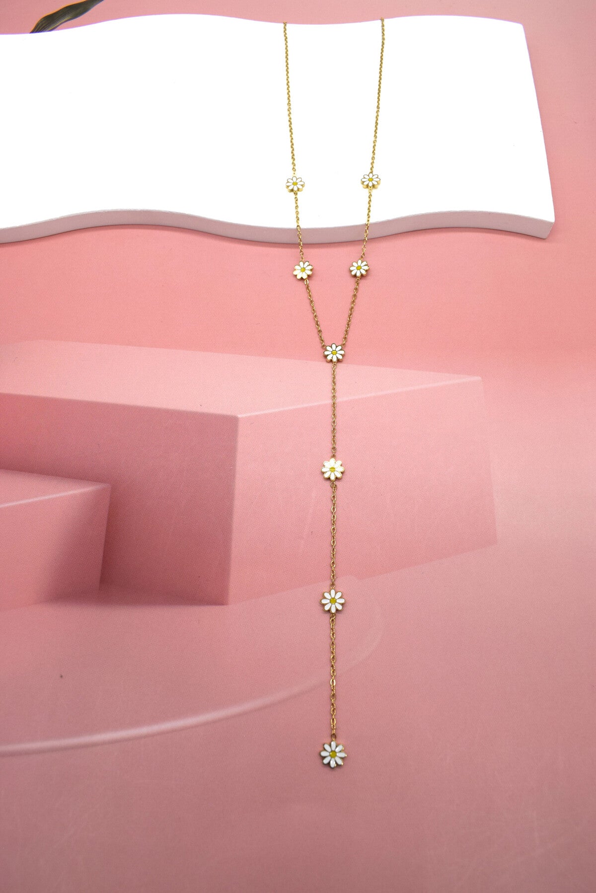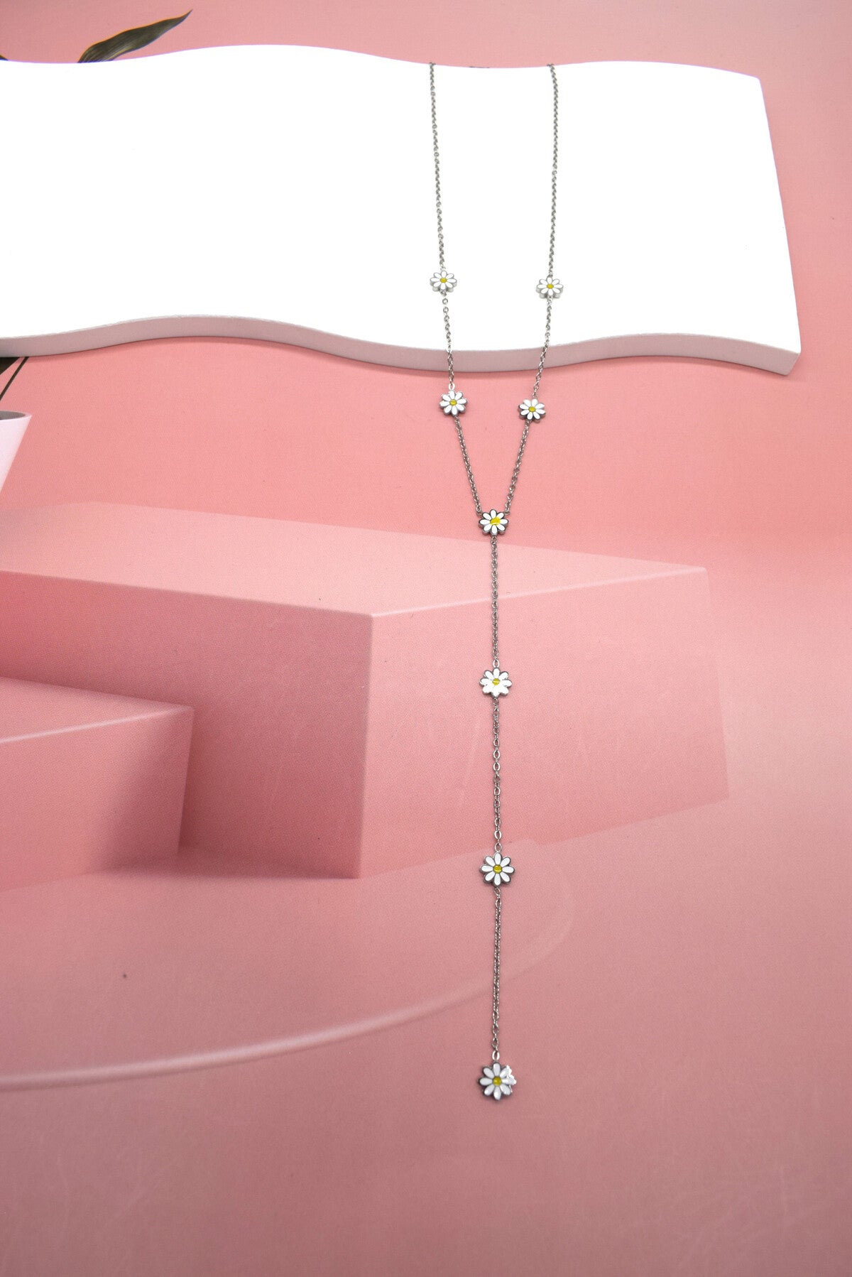 Le collier Y Marguerite est une chaîne fine ornée de 8 marguerites. Le collier Y est pile dans la tendance, à vous de choisir celui fait pour vous ! Ce modèle est en acier inoxydable et vous est proposé doré ou argenté.