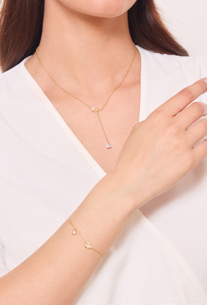 Le Collier Mattina est un modèle tout en délicatesse et élégance. Une chaîne fine ornée d’une feuille tout en strass et d’un brillant. Ce collier est irrésistible ! Il vous est proposé en acier inoxydable doré ou argenté.