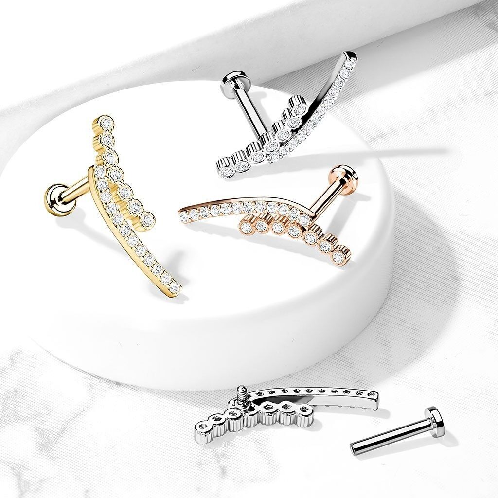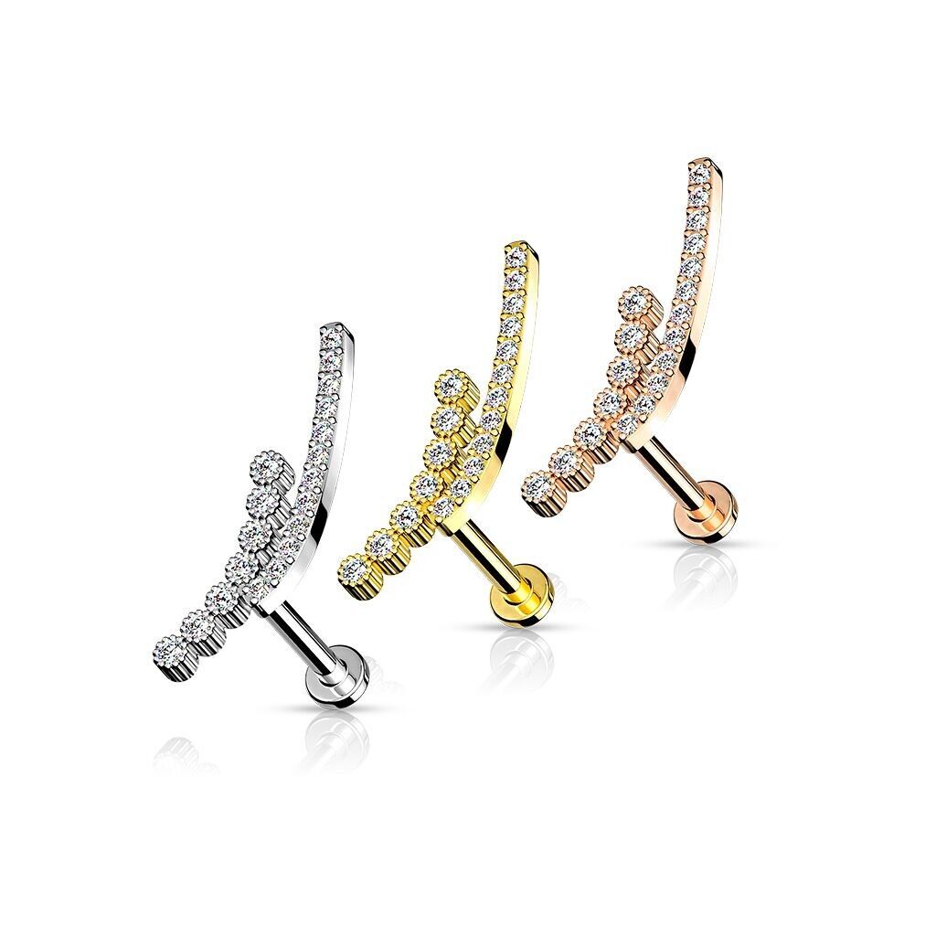 Le piercing Linea est un modèle très épuré, 2 lignes scintillantes d’oxydes de zirconium posées sur votre oreille, un modèle tout en élégance ! Le piercing Linea est en acier chirurgical et zirconium, il vous est proposé argenté ou doré en 6mm ou 8mm.