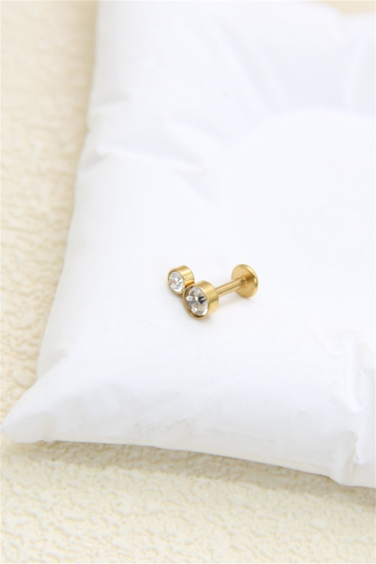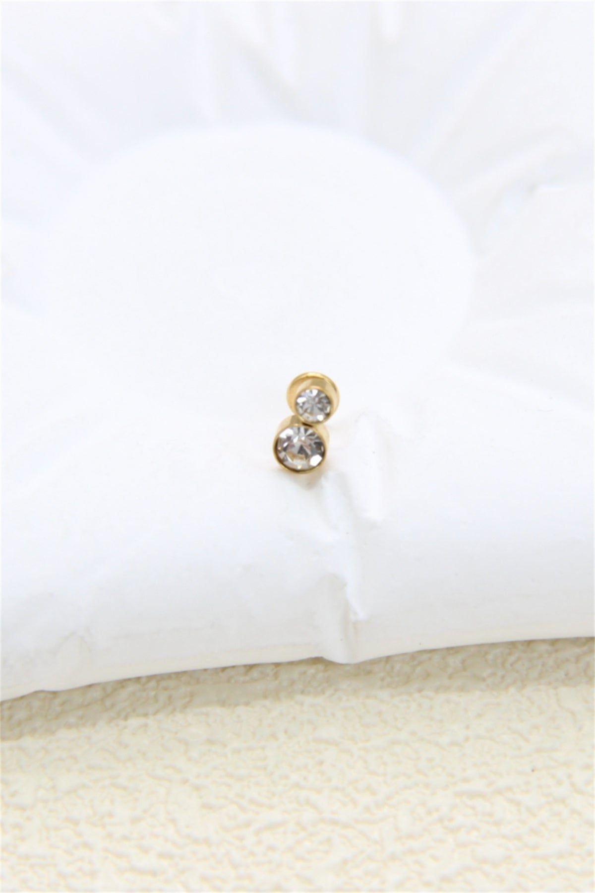 Ce piercing Solitaires double strass doré en acier inoxydable séduit par son éclat raffiné et son design minimaliste. Les deux cristaux scintillants apportent une touche de lumière subtile, parfaite pour un look chic et sophistiqué.